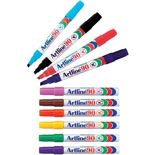 Artline 90 Permanent Markers Chisel 2-5mm Assorted Colours Box Of 12