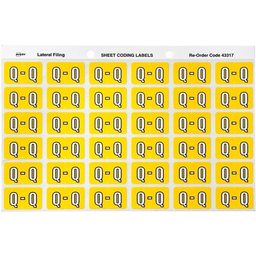 Avery Alphabet Coding Label Q Side Tab 25x38mm Yellow Pack Of 180