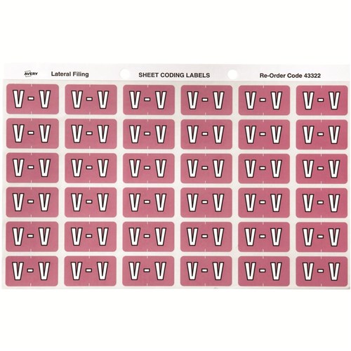 Avery Alphabet Coding Label V Side Tab 25x38mm Mauve Pack Of 180