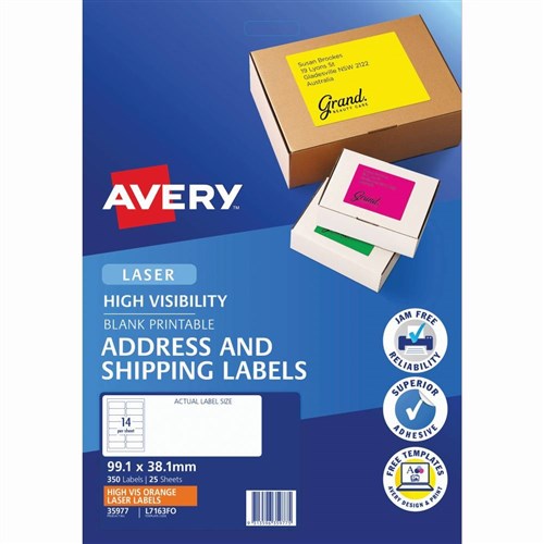Avery High Visibility Shipping Laser Labels Orange L7163FO 99.1x38.1mm 14UP 350 Labels