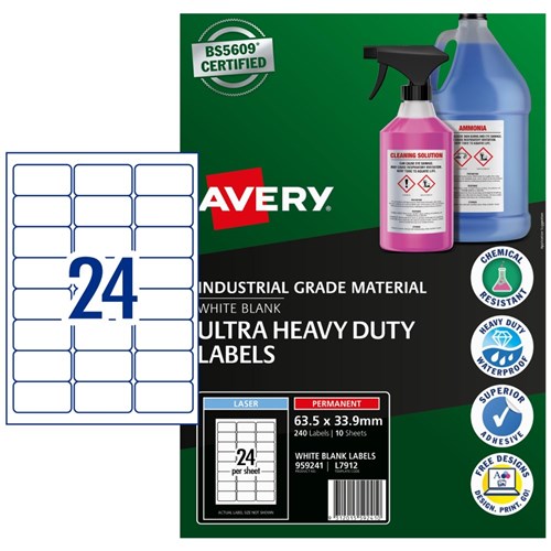 Avery Identification Laser Ultra Resistant White L7912 63.5x33.9mm 24UP 240 Labels