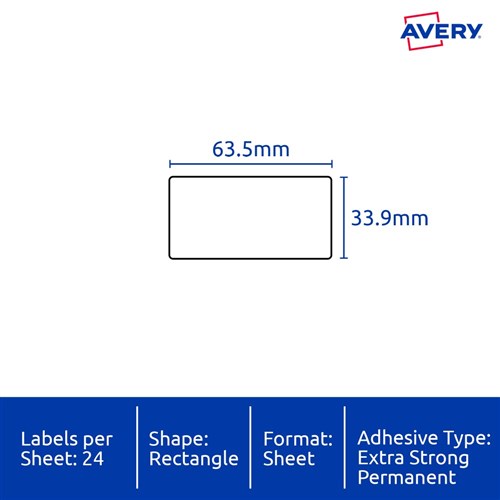 • Size: 63.5x33.9mm 240 labels, 10 sheets. 24 labels per sheet (24UP).