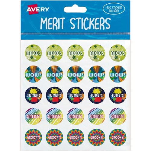 Avery Merit Stickers Caption 3 Round 22mm 5 Designs Assorted Colours 300 Stickers