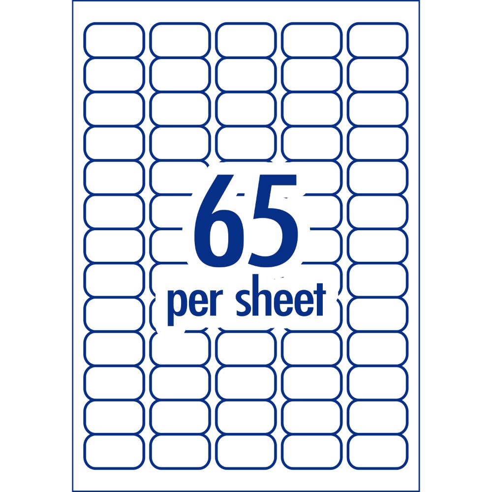 • Size: 38.1 x 21.2mm, 3250 labels, 50 sheets, 65 labels per sheet (65UP).