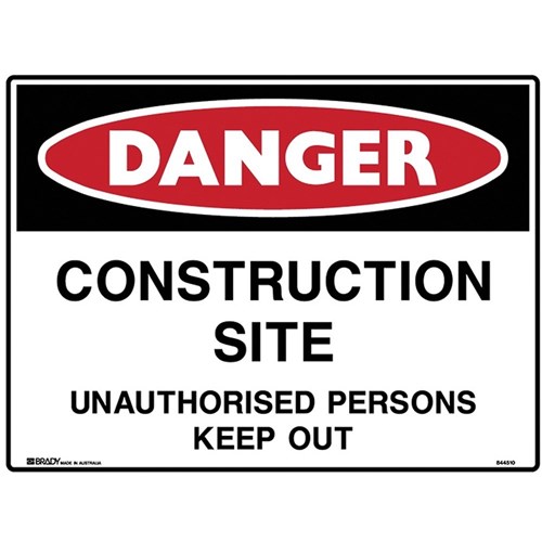 Brady Danger Sign Construction Site Unauthorised Persons Keep Out 600Wx450mmH Polypropylene