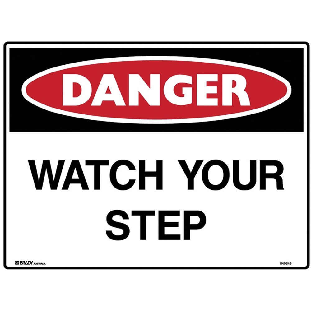 Brady Danger Sign Watch Your Step 600W x 450mmH Polypropylene White/Red/Black