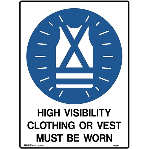 Brady Mandatory Sign High Vis Clothing Must Be Worn 450W x 600mmH Poly White/Blue