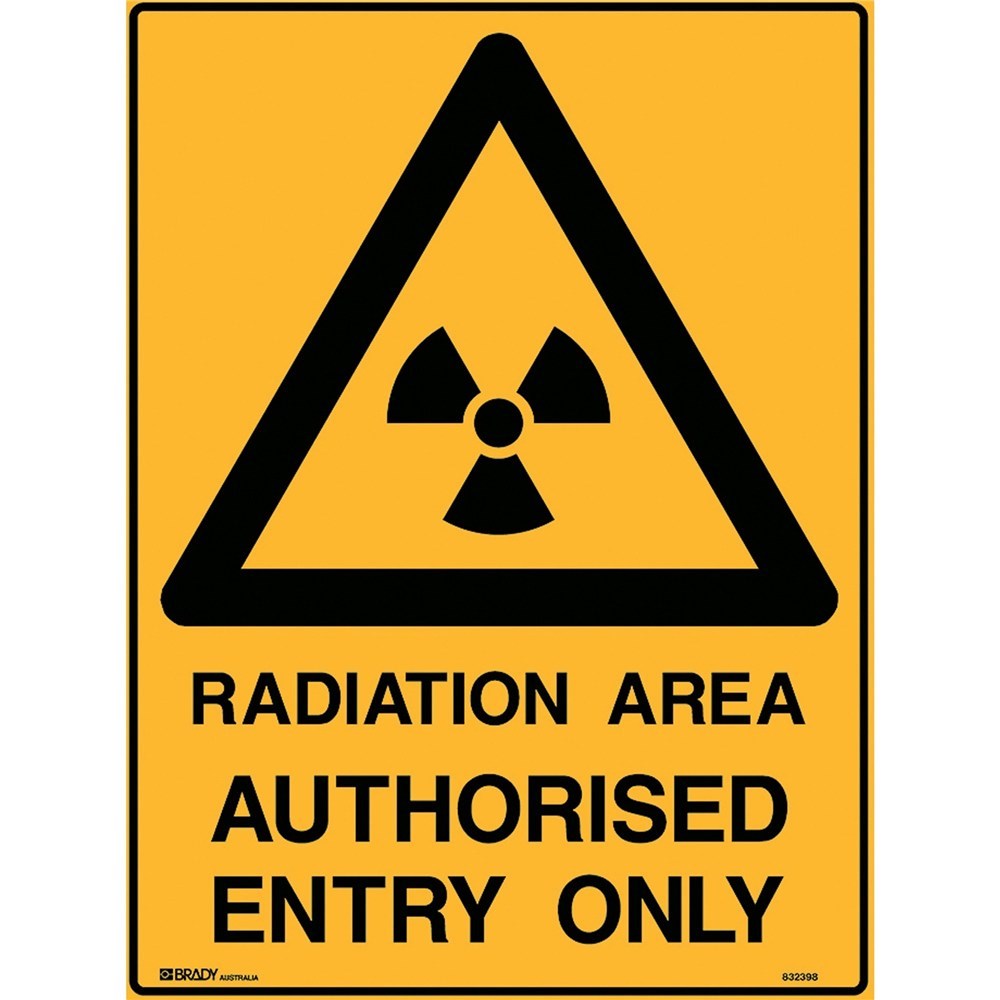 Brady Warning Safety Sign Radiation Hazard Auth Entry 450Wx600mmH Metal Yellow/Black