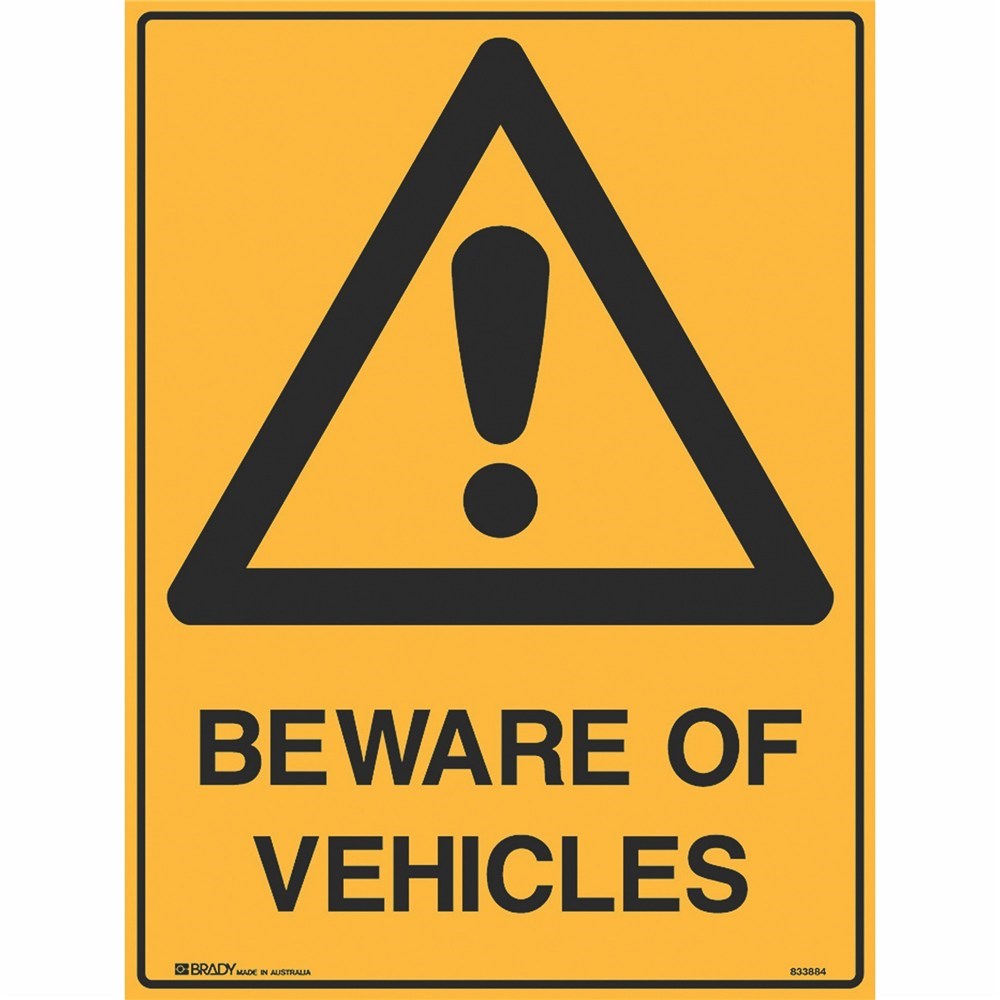 Brady Warning Sign Beware Of Vehicles 450W x 600mmH Metal Yellow/Black