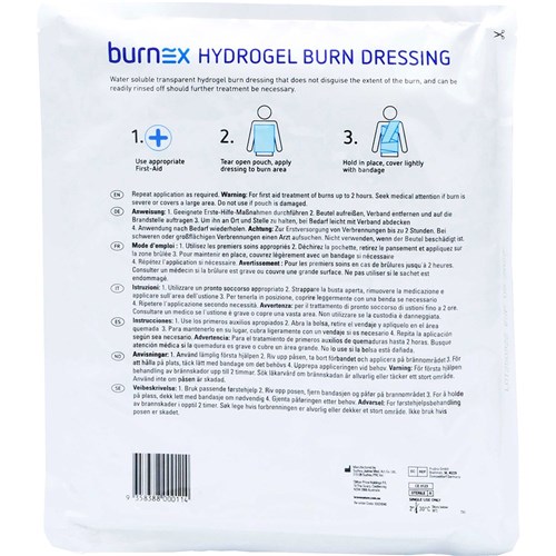 • Burnex burn hydrogel is first aid burn treatment and can be used for minor burns, scalds and sunburn.
