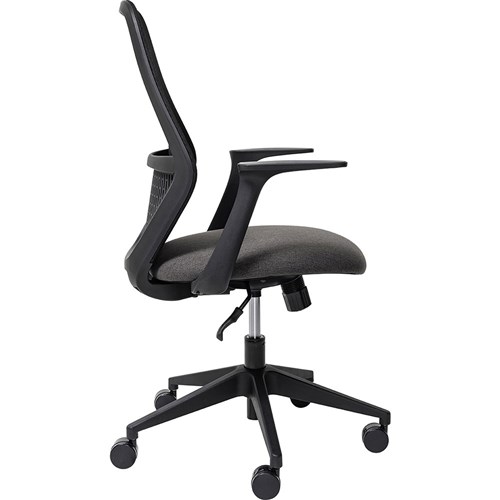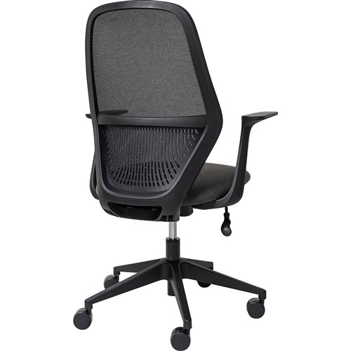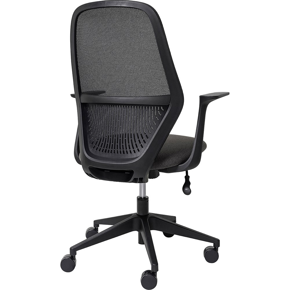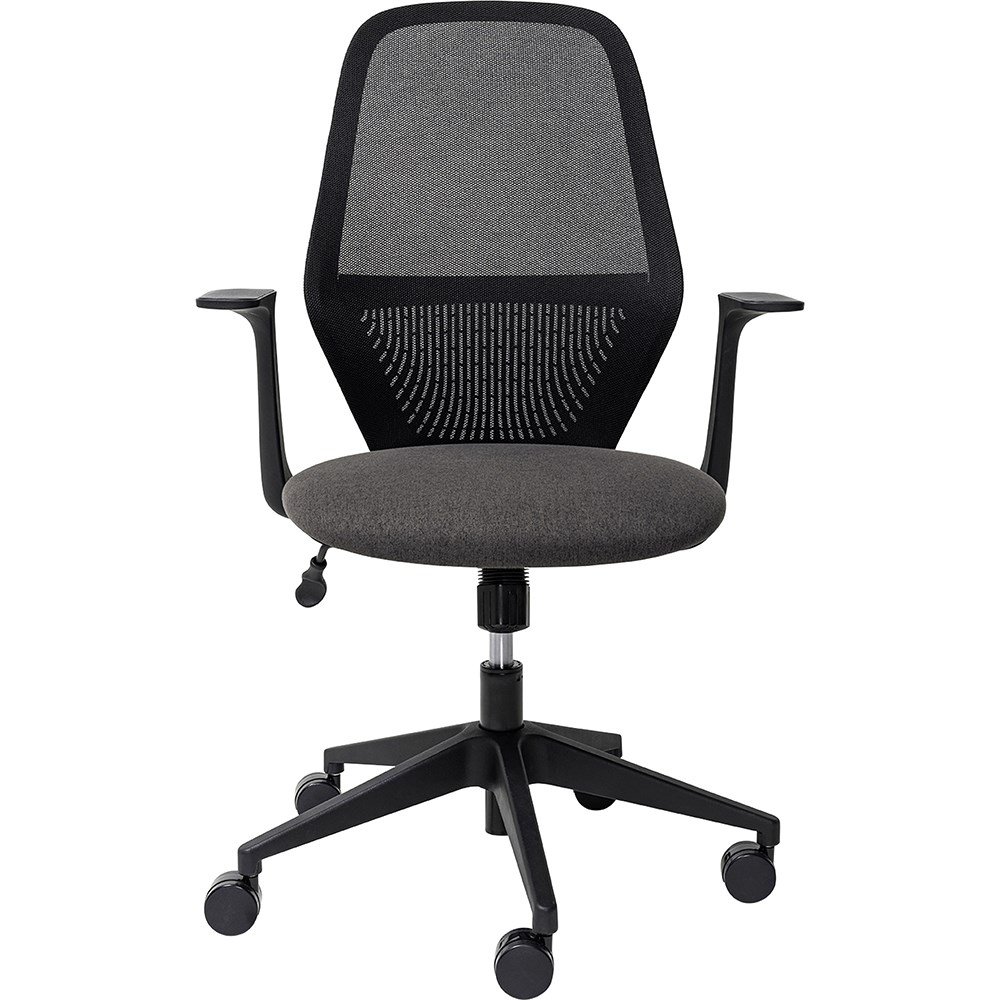 • Composition: Breathable mesh back and fabric upholstered seat.