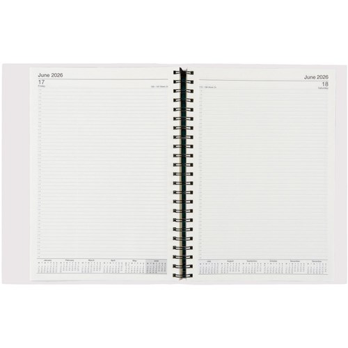 • Day to page layout diary to keep track of appointments, meetings, and other important events.