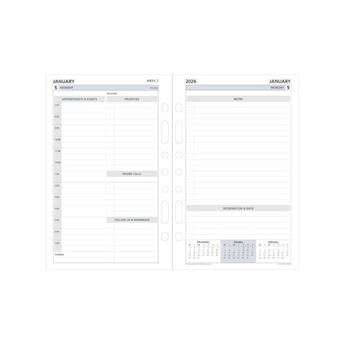 Debden Dayplanner Refill Desk 140 x 216mm Dated 2 Days to Day
