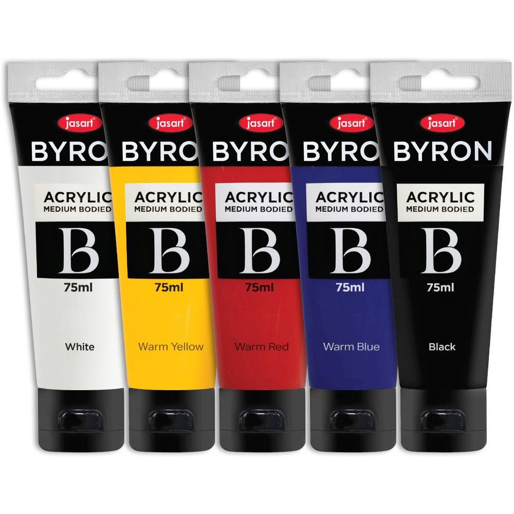 Jasart Byron Acrylic Paint 75ml Primary Warm Colours Set of 5