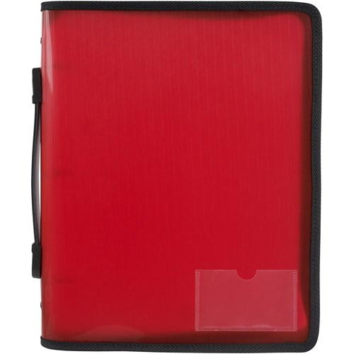 Marbig Zipper Binder With Handle A4 3 O-Ring 25mm Red