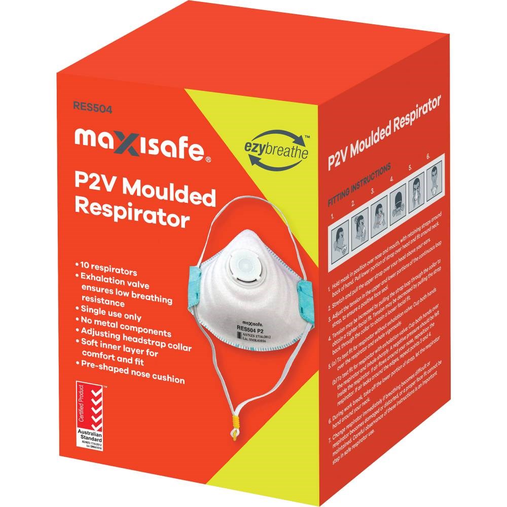 Maxisafe P2V Moulded Respirator Disposable With Valve White Pack Of 10