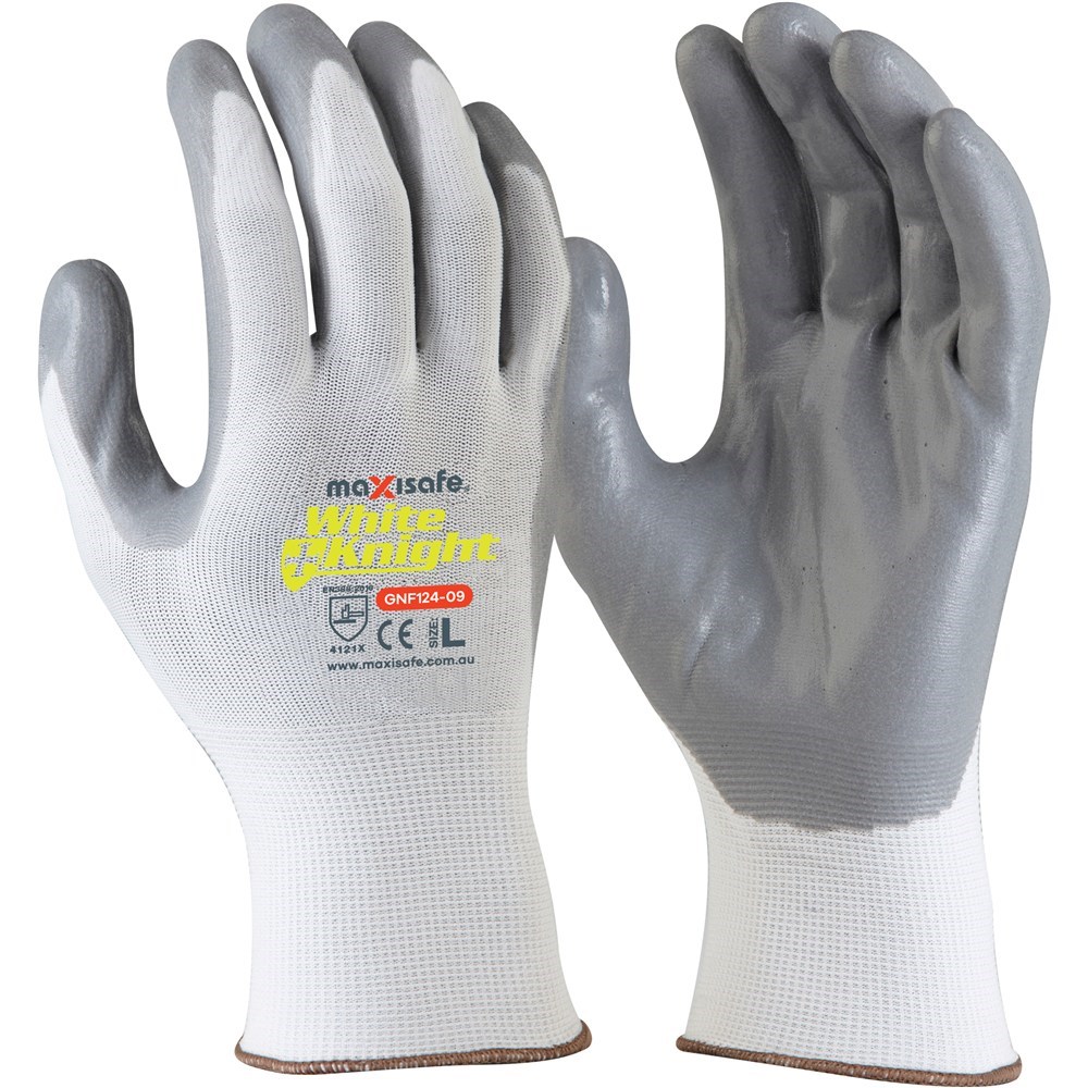 Maxisafe White Knight Nitrile Palm Gloves White And Grey Medium