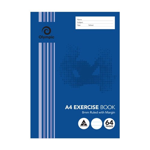 Olympic E864 Exercise Book A4 8mm Ruled With Red Margin 64 Page