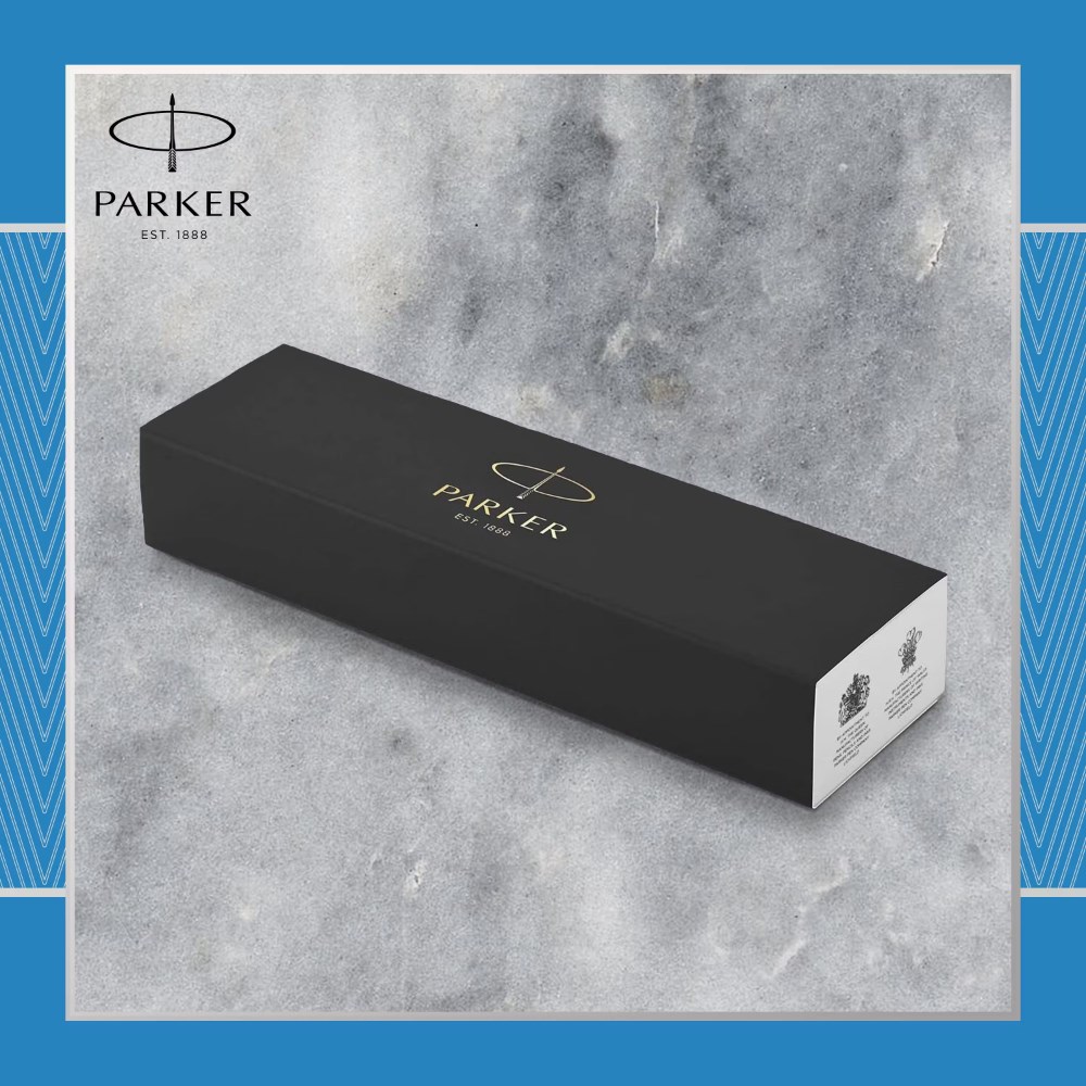 • Refreshing blue-grey metallic lacquered body engraved with an iconic chevron pattern is complemented by chrome trims and the signature Parker arrow clip.