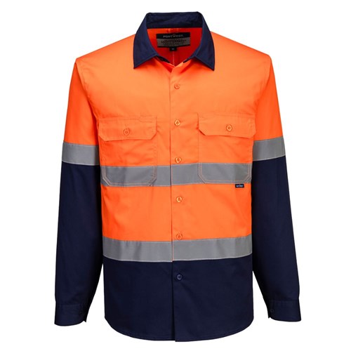 Portwest Industrial Hi-Vis Lightweight Contrast Shirt Long Sleeve XL Orange/Navy