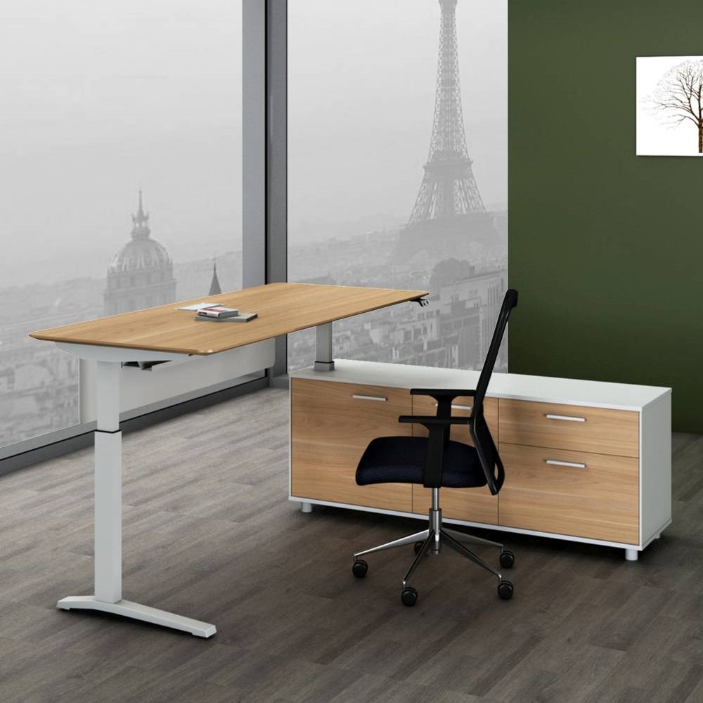 Potenza Height Adjustable Desk Right Return 2000W x 1820W x 720-1210mmH Walnut/White