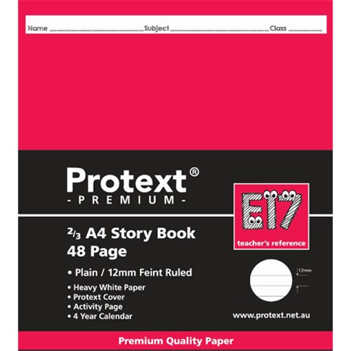 Protext Premium Story Book 2/3 A4 48 Page Plain/Ruled 12mm Red Margin E17
