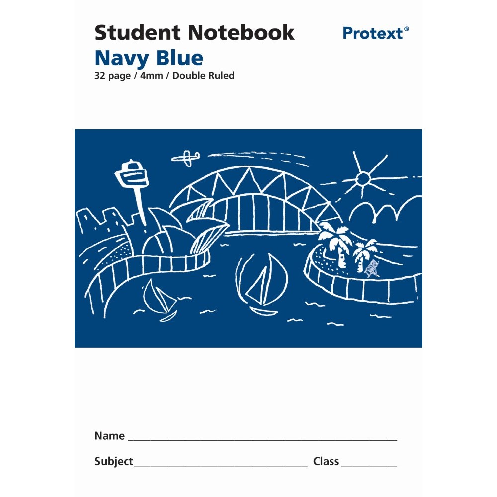 Protext Student Note Book 250 x 175mm Double Ruled 4mm 32 Page Navy Blue