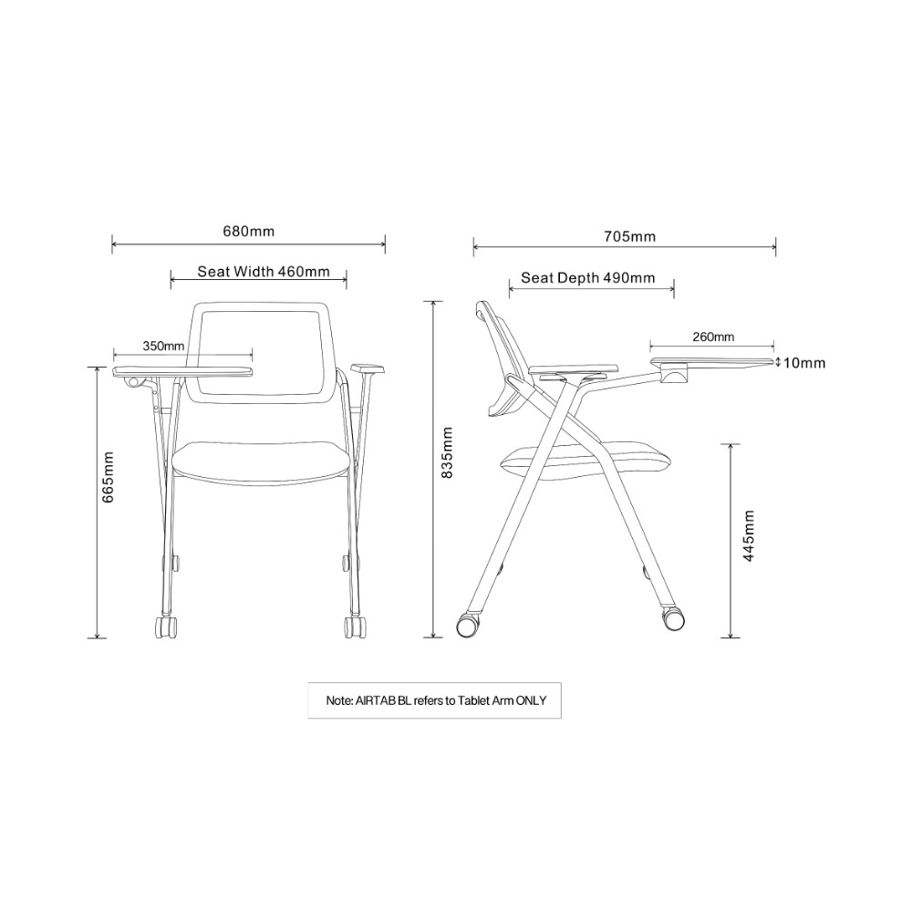 Rapidline Air Training Chair Tablet Arm Only Black