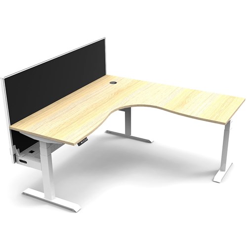 Rapidline Boost+ Corner Workstation + Screen + Cable Tray 1800/1800mmW Oak/White