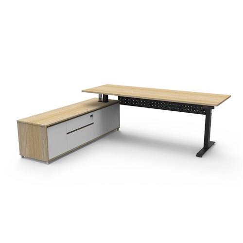 Rapidline Boost+ Executive Desk + LHS Cabinet+Panel 2270W x 1936D x 620-1270mmH Oak/Blk