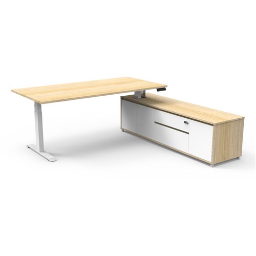 Rapidline Boost+ Executive Desk + RHS Cabinet 2020W x 2011D x 620-1270mmH Oak/White