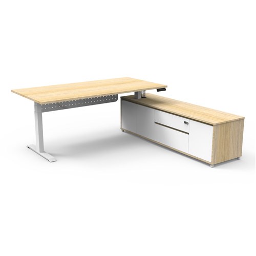 Rapidline Boost+ Executive Desk + RHS Cabinet+Panel 2020W x 2011D x 620-1270mmH Oak/Wht