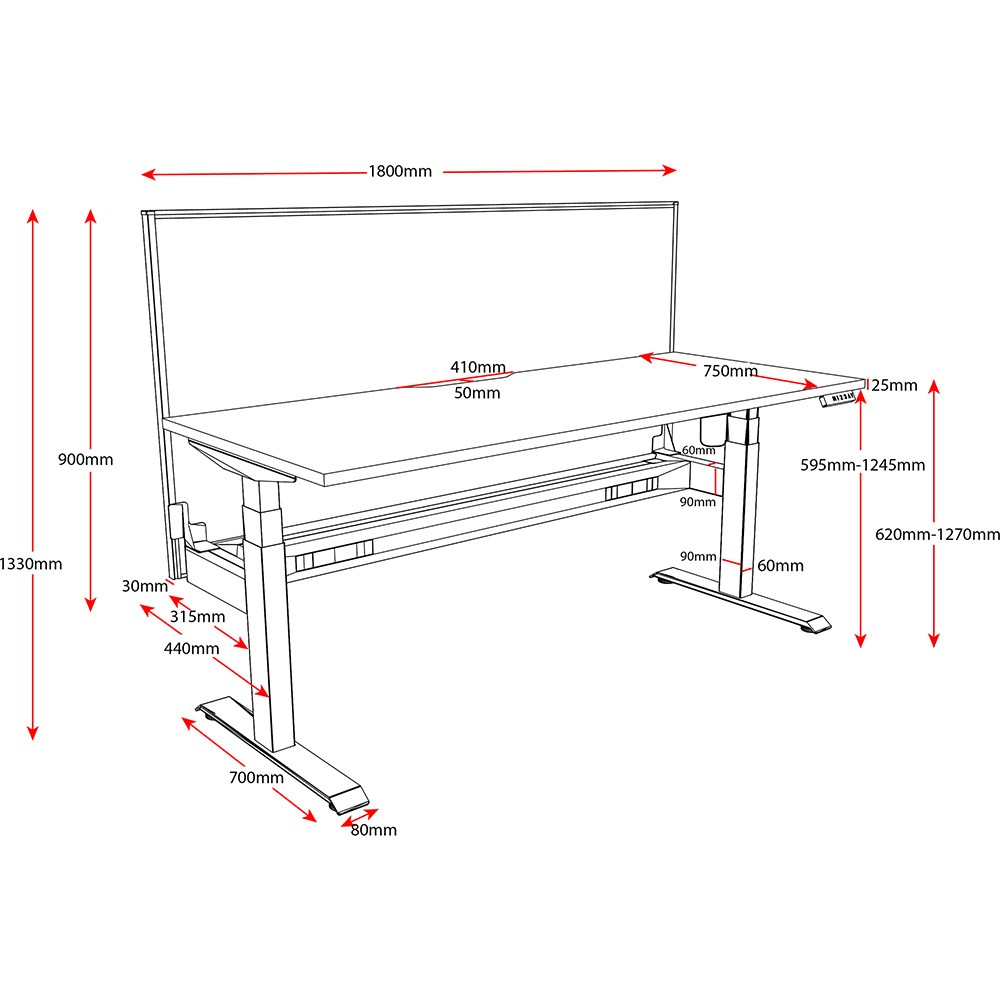 • Unit Dimension: 1800mm W x 750mm D x 620-1270mm H.