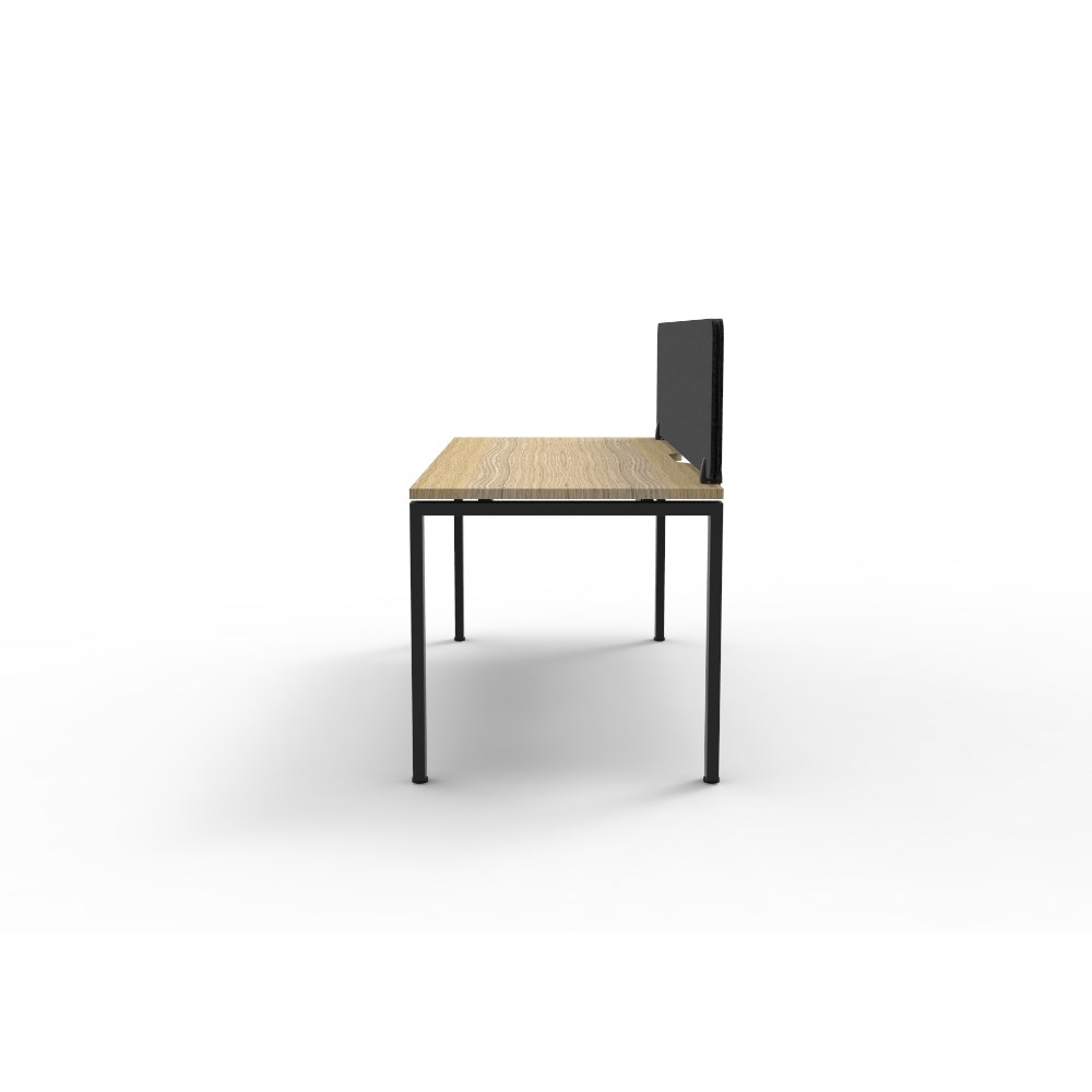 • Natural Oak worksurface with rigid edging and 410mmW x 50mmD scallop cable access. Black Satin powder coat frame. Eco screen.