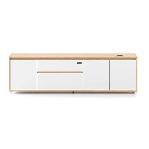 • Executive desk left hand side cabinet for Executive Boost+ and Halo+ Workstations. Natural Oak carcass and Natural White drawer and door fronts.