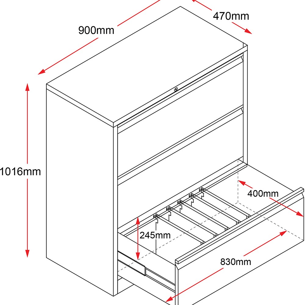 Rapidline Go Lateral Filing Cabinet 3 Drawer 900W x 473D x 1016mmH Black