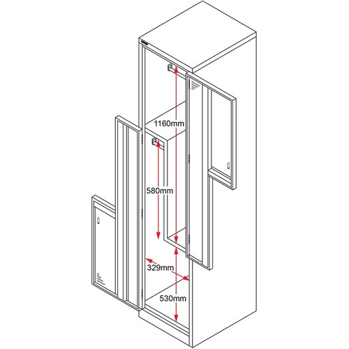 Rapidline Go Locker 2 Step Door 380W x 455D x 1830mmH Silver Grey