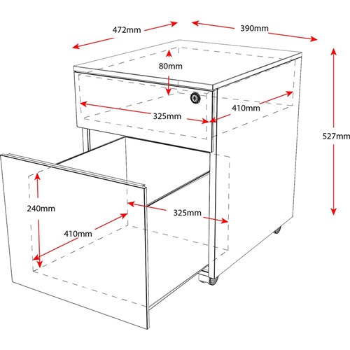 • 1 pen or stationery drawer and 1 filing drawer.