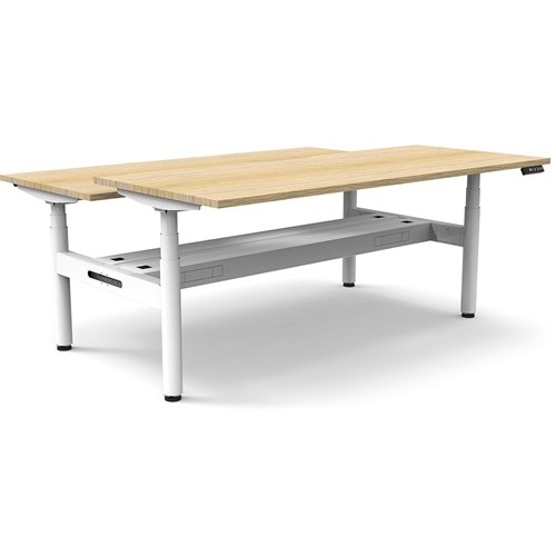 Rapidline Halo+ Back to Back Workstation + Cable Tray 2 Person 1200mmW Oak/White