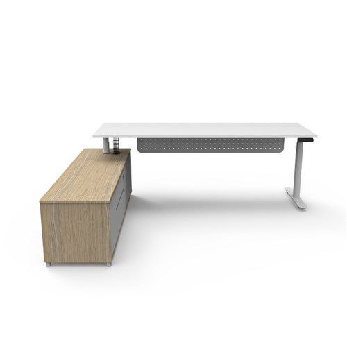 Rapidline Halo+ Executive Desk + LHS Cabinet + Panel 2270W x 1936D x 620-1270mmH White/Wht