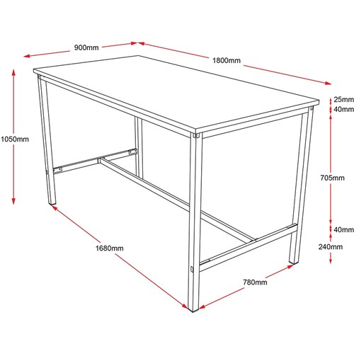 Rapidline High Bar Table 1800W x 900D x 1050mmH Oak Top Black Frame