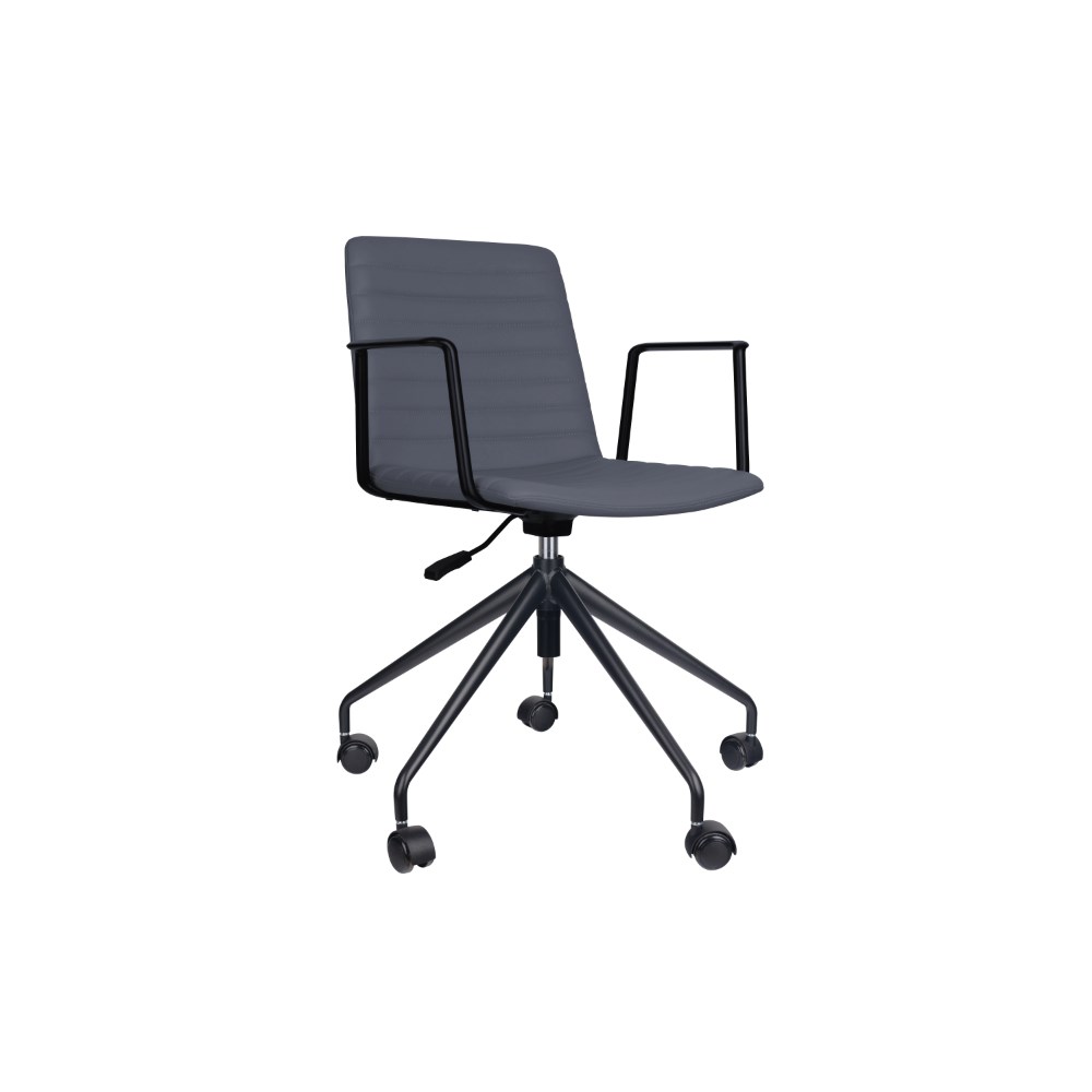 Rapidline Pixel Breakout Room Chair With Arms Black Legs French Navy PU Leather Seat