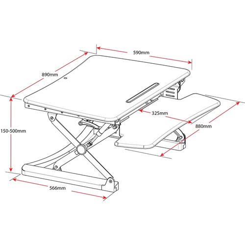 • Work surface size 890mm W x 590mm D. Height adjustable 150-500mm high.