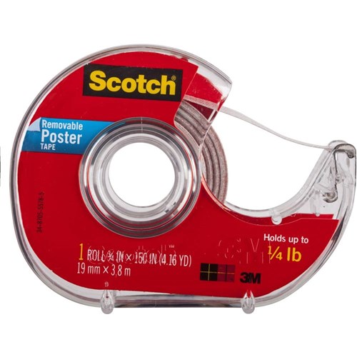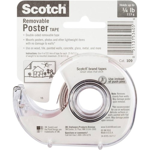 Scotch 109 Mounting Poster Tape 1.9cmx3.8m Indoor Removable With Dispenser