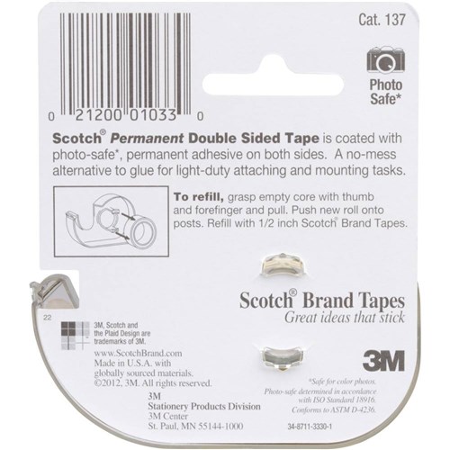 Scotch 137 Double Sided Tape 12.7mmx11.4m & Dispenser
