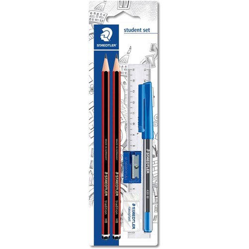Staedtler 110 Tradition Student Set 2 HB Pencils, Eraser. Pen, Ruler & Sharpener