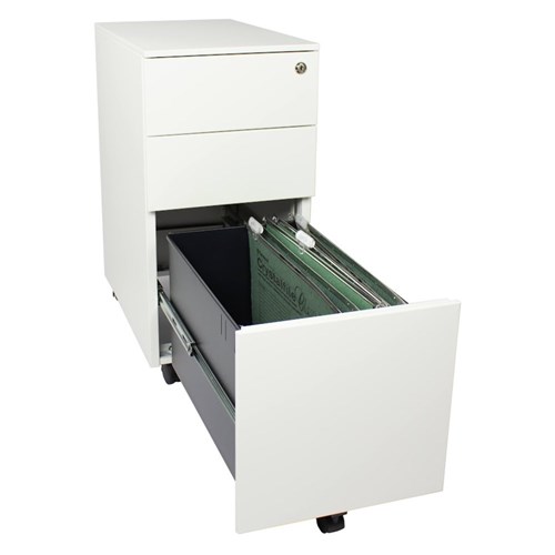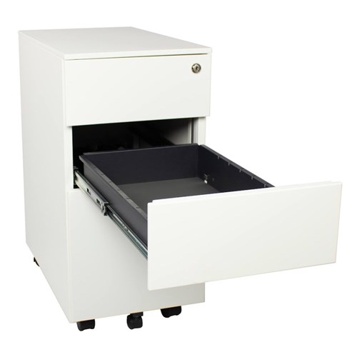 Steelco Slimline Mobile Pedestal 2 Drawer 1 File 300W x 500D x 615mmH White