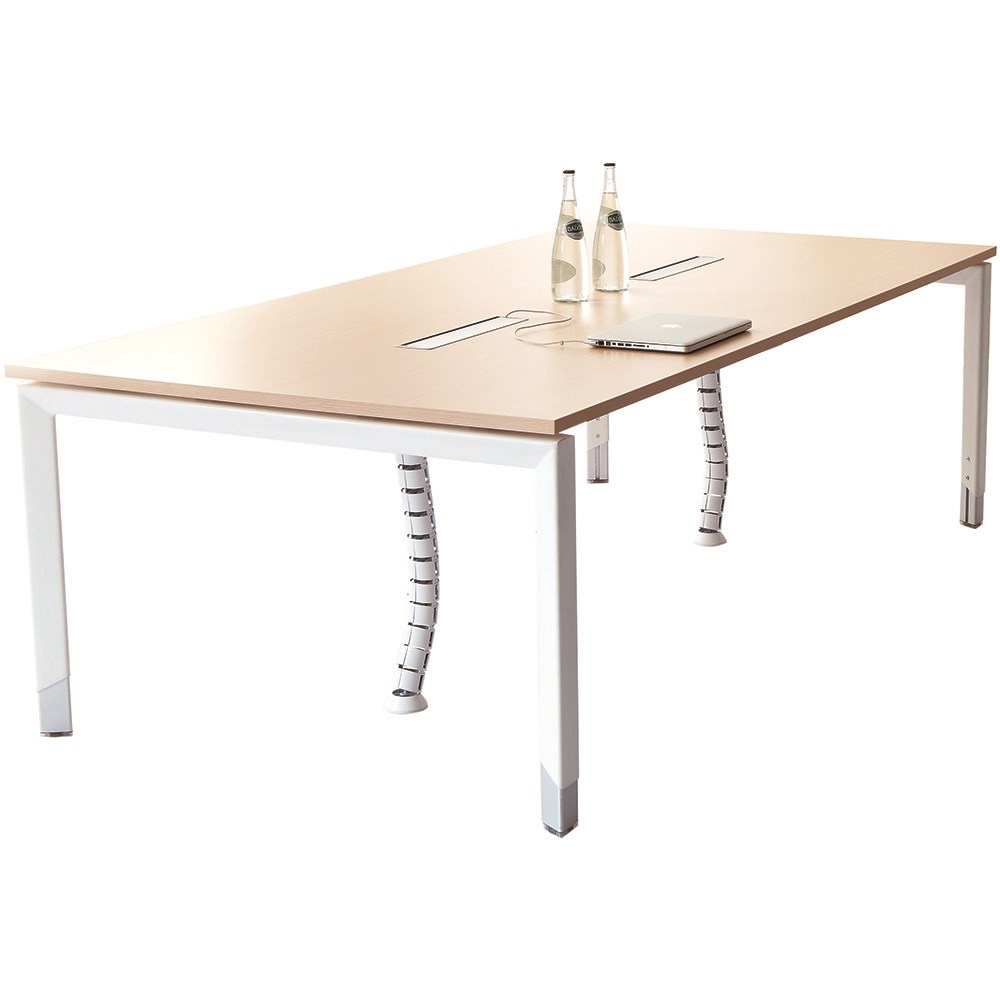 Sylex Oblique Boardroom Table 2400W x 1200D x 620-920mmH + Power Boxes Snow Maple
