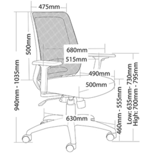 • 630mm black nylon 5 star base.
