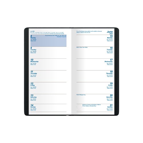 Upward Standard Pocket Diary A6/7 2 Weeks To View Black
